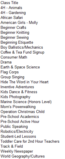 If you are wondering what to teach for a co-op class, we have a few lists to help you get started: